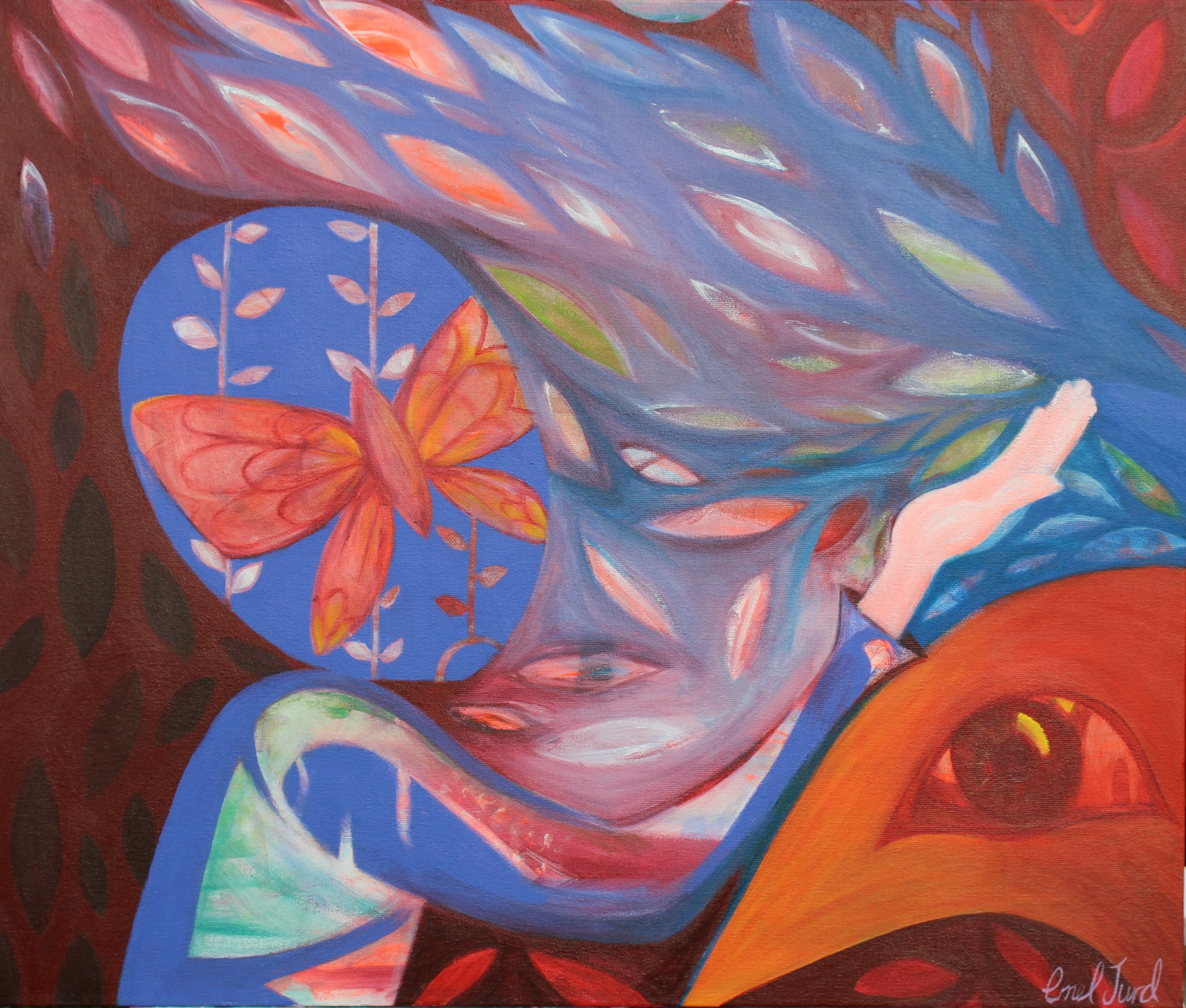 Flooded with ideas, information and insights we filter and arrange, discard and absorb, constantly transforming our lives through our own unique interpretation of events. Again the messenger bird appears to guide and protect, supporting the transformational process. Elements not relevant or selected continue on to become part of an uneeded past.