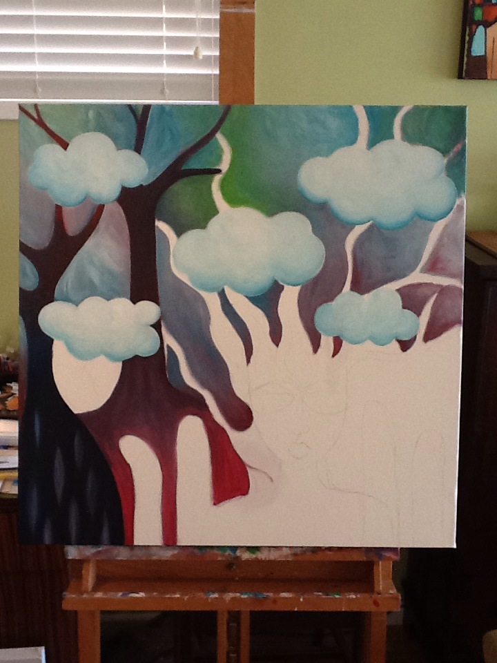 I started a new painting yesterday and as always, as I paint, I think. I got to thinking about the struggle to remain positive and focused in a world that bombards us all with images of horror and has a vested interest in selling us the lie that we are not enough, we don’t have enough.  “They” say we need to work harder, to be and have a whole lot more than we currently are and have, so possibly in a far off point, in a distant future, we can rest and “Be” as opposed to do ( read: buy, diet, nip, tuck, climb the ladder, live in a better suburb, bigger house, do Yoga, eat Paleo, Macro, Raw, Organic) So here’s the scoop, I’m not perfect and neither is anything or anyone. Lets set ourselves free for the real journey.